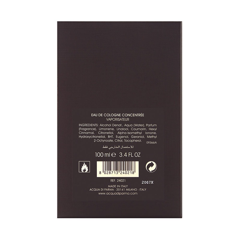 An original, elegant fragrance inspired by the distinctive combination of two olfactory themes that are bursting with personality – the citrus notes of Colonia blend with deep sensuality of Ambergris, an ancient essence that is extremely rare and precious. Its characteristic scent is owed by the effect of the ocean and the wind, shaping and caressing this precious substance for many years before casting it ashore on the worlds beaches. The zesty citrus top notes of orange and bergamot evolves into a warm heart with cedar wood, rose and patchouli. Sublimated by the perfect harmony of Ambergris with sandalwood, warmed by the soft accents of vanilla, this new Eau de Cologne Concentre reveals its unique personality in base notes of inimitable elegance and refinement.