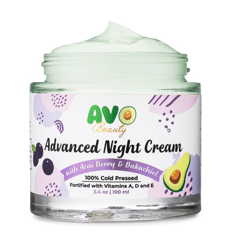 Blended for aging skin, this advanced night cream rejuvenates, tightens, and brightens. Wake up every morning welcomed by a renewed sense of self, thanks to the deeply restoring blend of avocado oil, acai berry and bakuchiol found within this bottle. Lightly scented with avocado and jungle fruits.