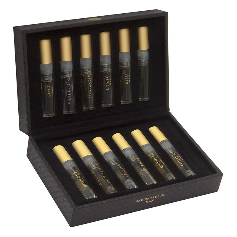 An elegant presentation box containing 12 samples.Each sample contains one of the current Amouage Fragrances.*Details provided by Amouage