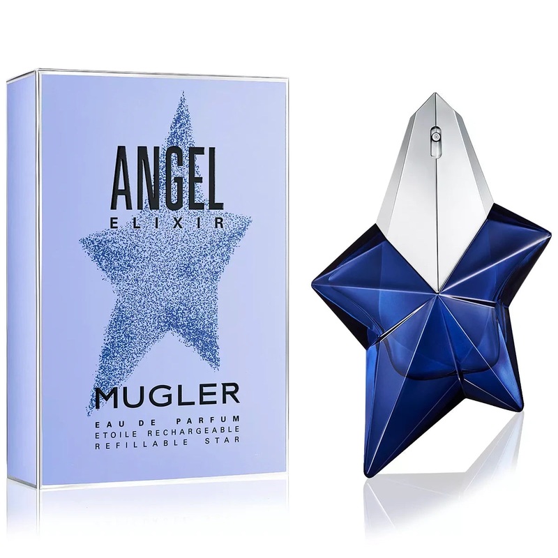 Experience the unexpected with Angel Elixir Eau de Parfum by MUGLER, a woody floral gourmand scent. Augmented femininity is celebrated with a powerful blend of sensuous vanilla, vibrant woods, and a spicy hook. Embrace your fearless side and indulge in its