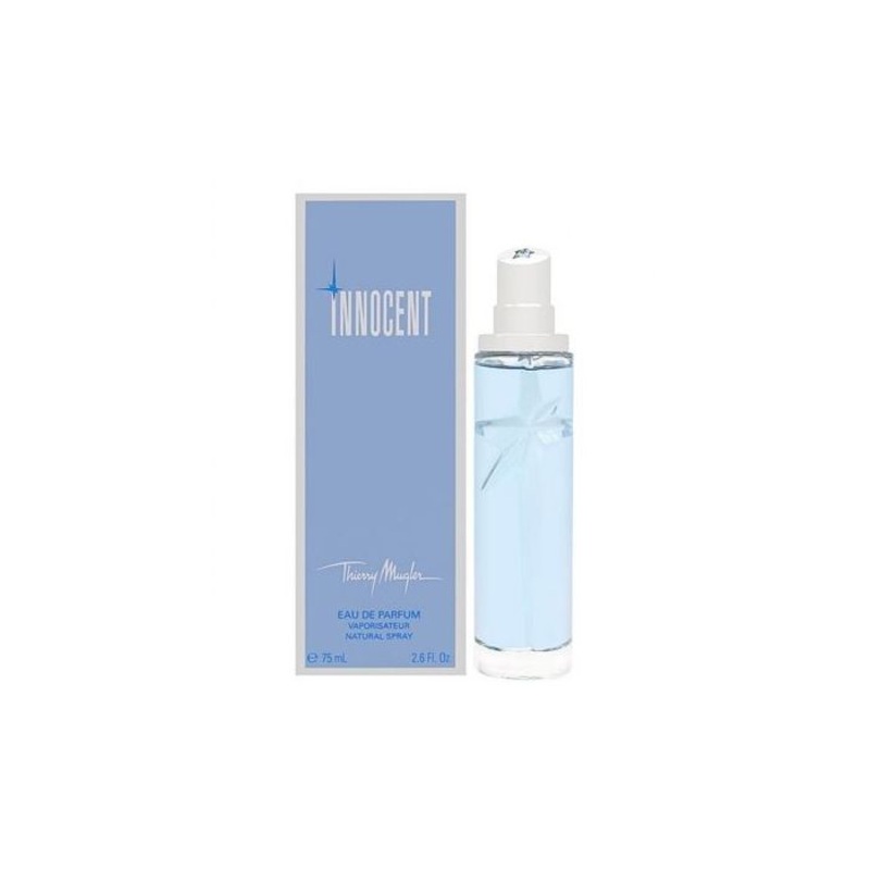 Launched in 1999, Angel Innocent is an oriental-fruity based fragrance. The scent is composed of bergamot, mandarin, helional, honey, dewberry, passion fruit, sugar almonds, meringue and amber musk. Manufacturer Thierry Mugler Gender Women Perfume Type Eau