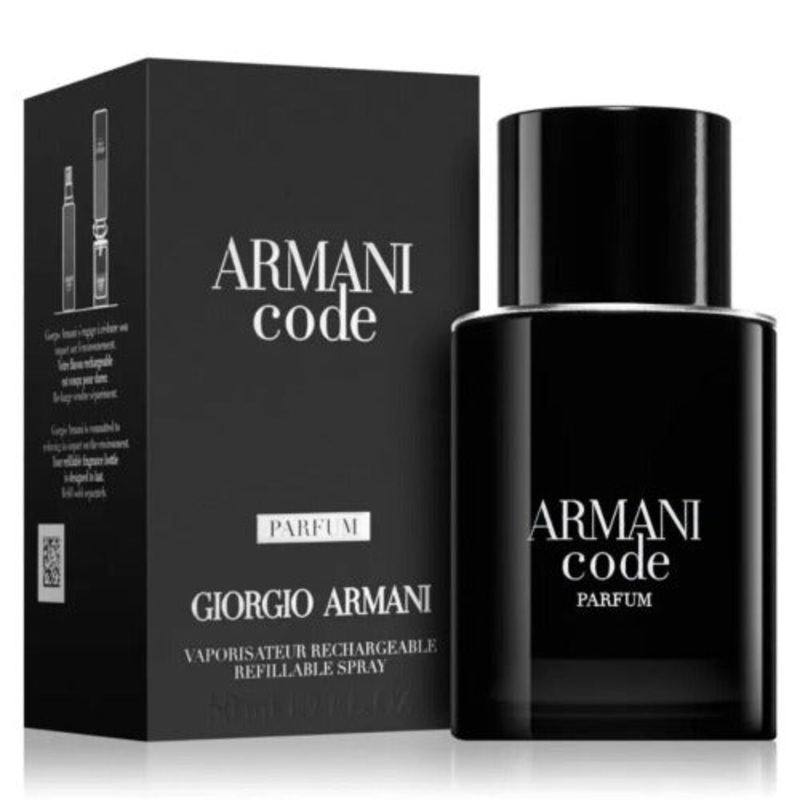 This new men's perfume is infused with the powerful and seductive signature Tonka Bean alongside fresh notes of iris, sage, and bergamot, to create a woody aromatic blend that is long-lasting and uniquely distinctive.The Giorgio Armani Code Parfum also imp