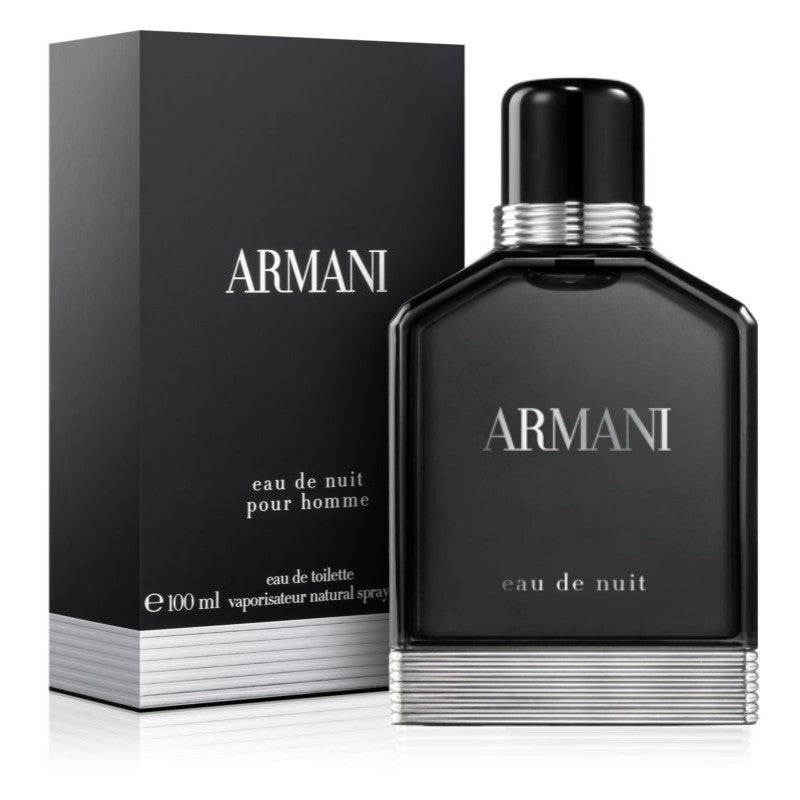 Introduced in 2013, Giorgio Armani's Eau de Nuit for men is a robust and masculine scent featuring tones of cedar and amber. The warm, sharp fragrance opens with a splash of bergamot that leads into warm cardamom notes before continuing with dramatic notes