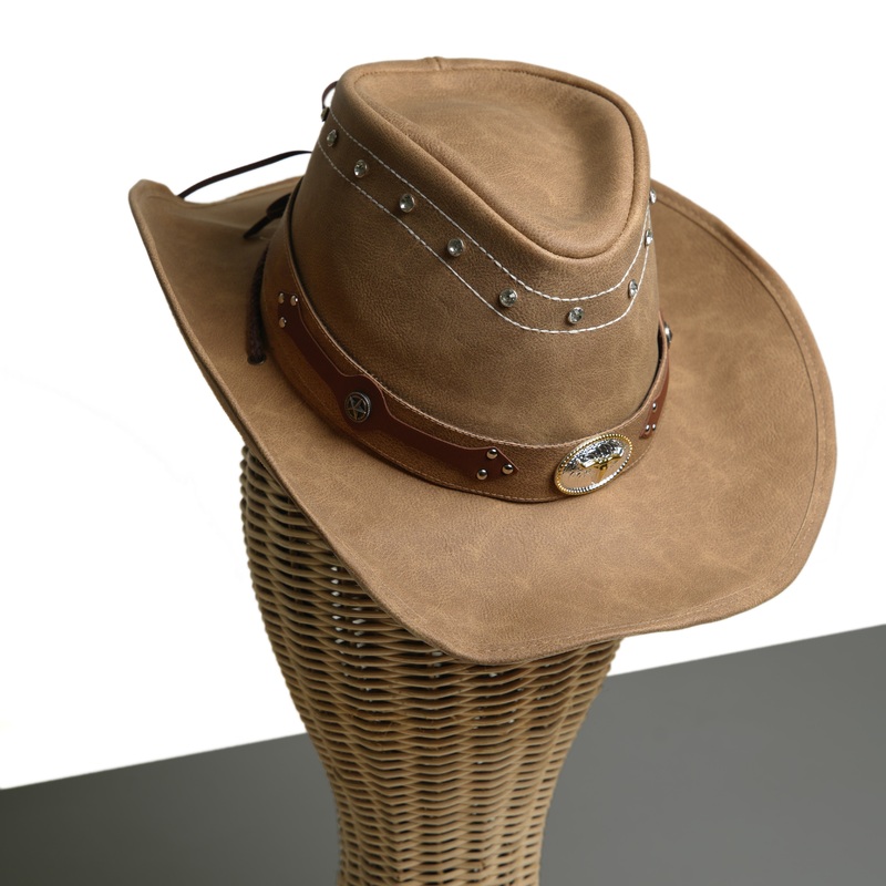 This hat is a perfect fusion of rugged Western style and edgy sophistication. Crafted from high-quality PU leather, it offers durability and a touch of modern flair. The ox head embellished belt adds a striking and unique detail that sets this hat apart from the rest. Whether you’re line dancing at a country music festival or exploring the great outdoors, our PU Leather Cowboy Hat with its ox head embellished belt is the ultimate accessory to make a bold statement.