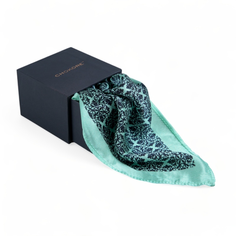 Arabic, Persian, and Turkishthe Mughal designs reflect all these cultures. This pocket square is inspired by Mughal designs and elevates your personality as you pair it with an interesting jacket. Crafted with 100% pure silk, this pocket square is perfect for formal as well as casual wear.