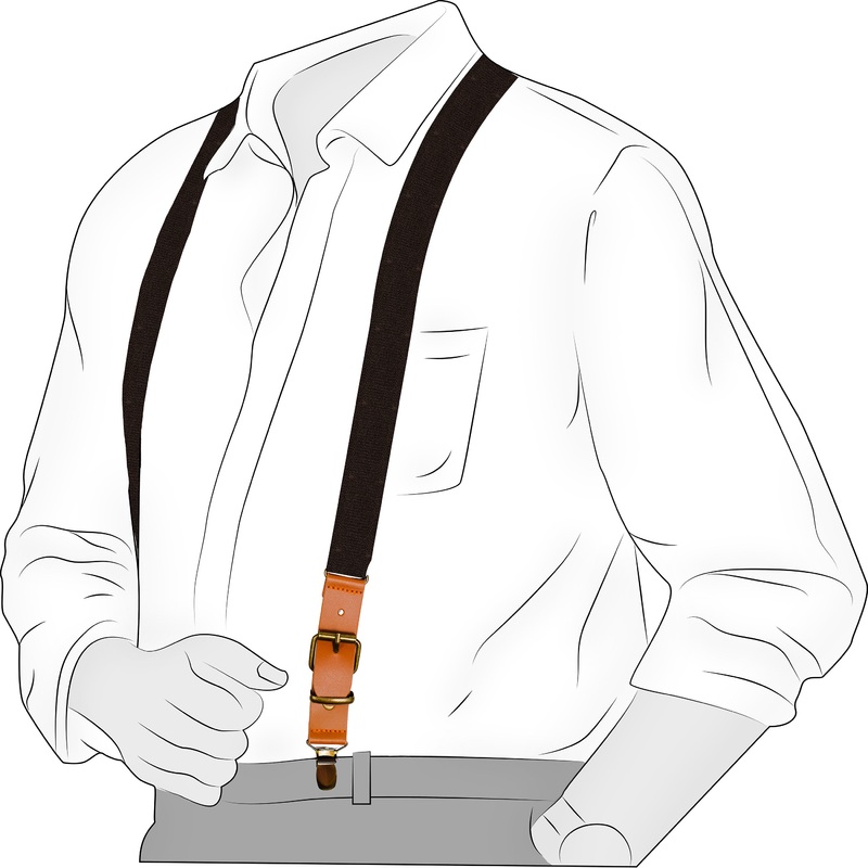 Increase your cool quotient. A versatile pair of suspenders, made with heavy duty elastic, a leatherite patch and ends. Y back with 3 Finger Clips Pair it with Jeans, Chinos, Casual Trousers and Tan shoes Material: Elastic braces and Leatherite cross patch