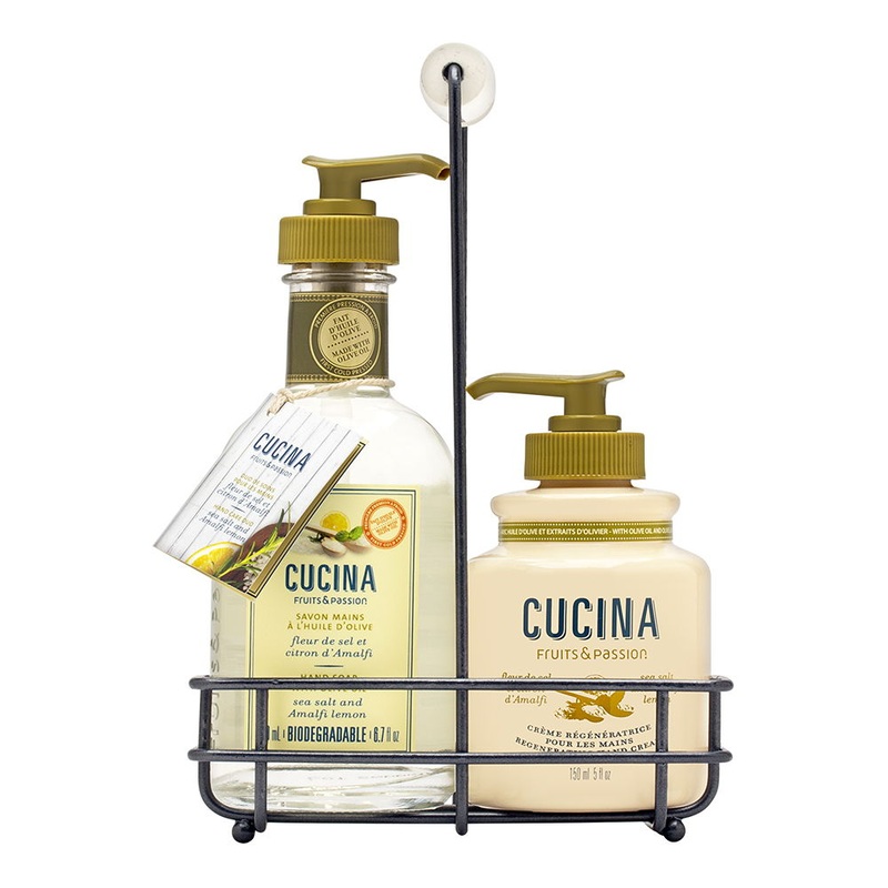 Cucina Sea Salt and Amalfi Lemon Duo Set:Formulated specifically to care for hands in the kitchen, the hand care duo channels all the benefits of the olive tree.The hand soap's biodegradable formula gently cleans hands without drying them and leaves them d