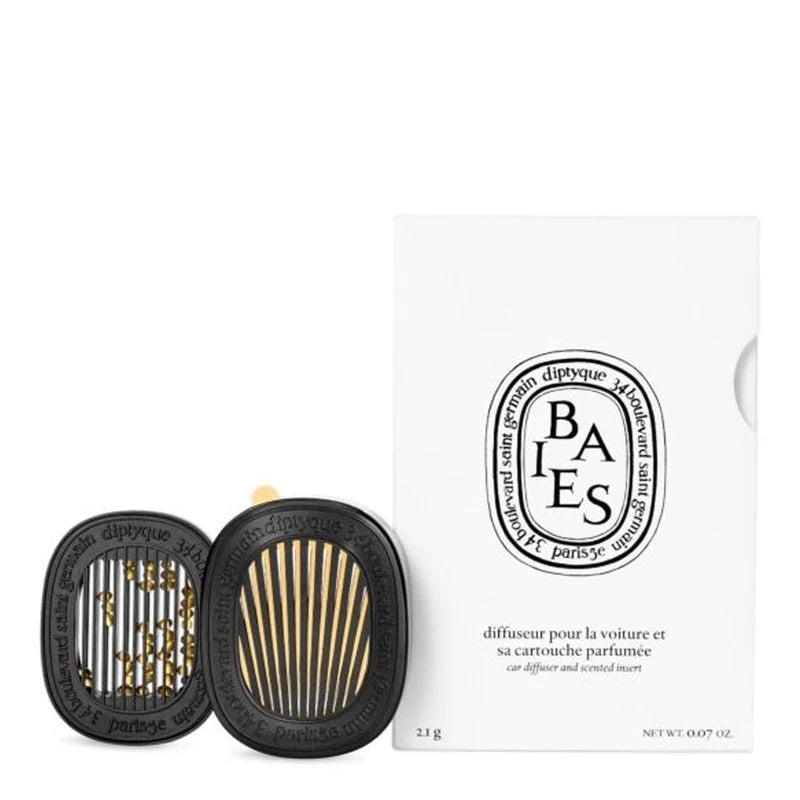Enhance your driving experience with the Diptyque – Un Air de Diptyque – Baies – Car Diffuser Set. This luxurious set includes an innovative car diffuser and a berry-scented insert, perfect for infusing your vehicle with a delightful fruity fragrance.