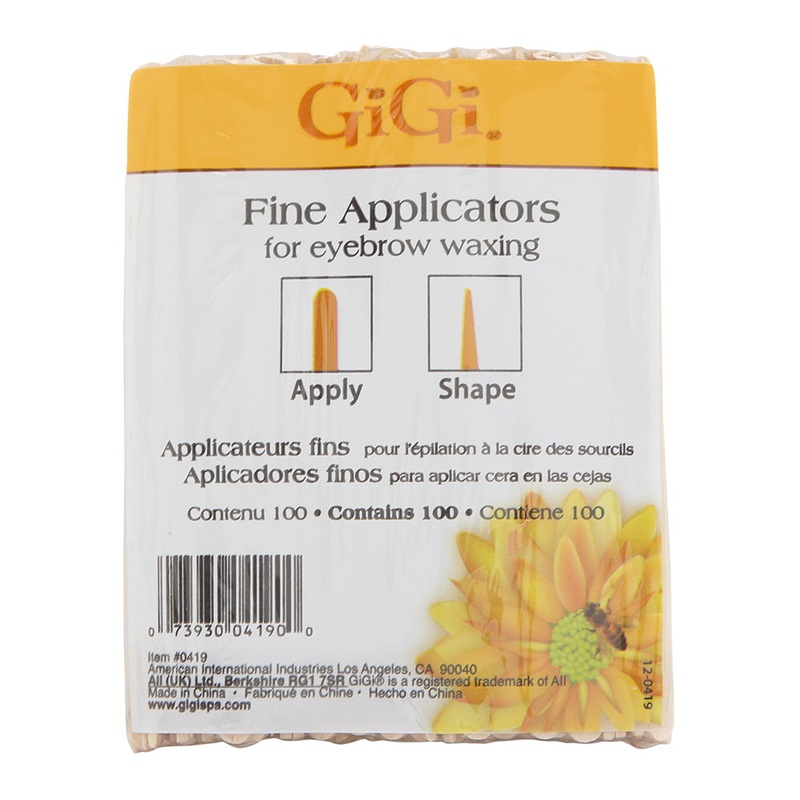 • GiGi Fine Applicators are designed specifically for eyebrow waxing. The round edge delivers the proper placement of wax for an even, controlled application while the pointed tip allows for shaping and contouring of the eyebrows, giving the client perfectly shaped and well-defined brows every time.