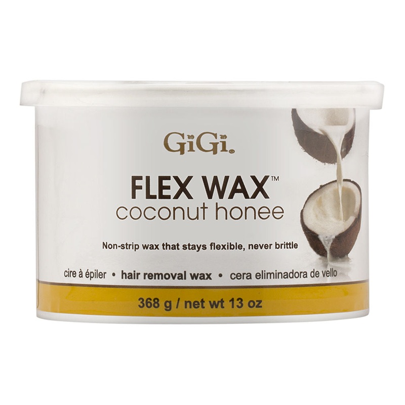 GiGi Flex Wax coconut honee. Non-strip wax that stays flexible, never brittle. A hybrid wax that combines the thin, pliable application of a soft wax without the use of muslin strips, like a hard wax.