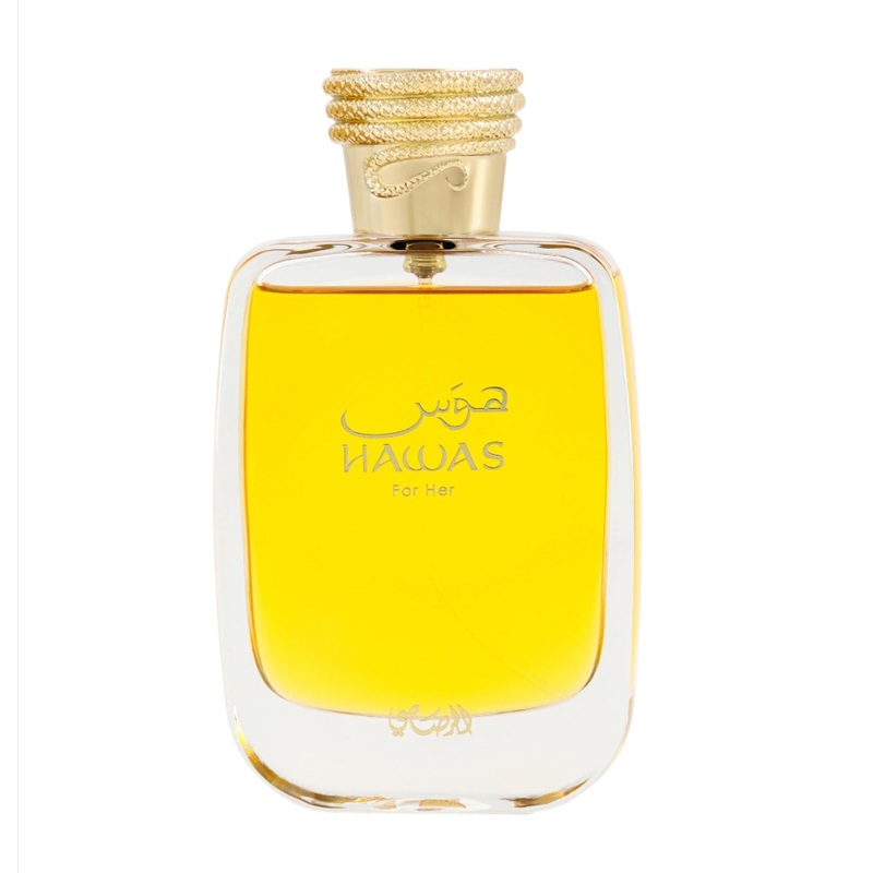Hawas for Her is a luxurious floral woody perfume with fruity, floral, and gourmand notes. Packaged in a sophisticated, golden bottle with a textured python design, it perfectly embodies the alluring and passionate nature of the modern woman.