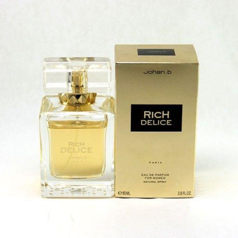 Rich Delice for women is made from a composition of pink pepper, jasmine, frosted cherry, bergamot,violet, freesia, amber, Tonka bean, sandalwood and musk. A long lasting ladies'fragrance recommended for winter and evening wear.