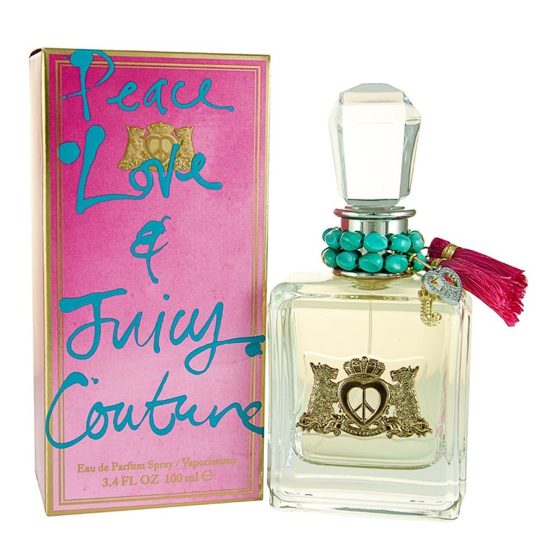 Juicy Couture Peace Love & Juicy Eau de Parfum A Free-Spirited Floral for the Boho GoddessPeace, love, and radiant beautyJuicy Coutures Peace Love & Juicy Eau de Parfum is an ode to the modern woman who lives with passion, dances to her own rhythm, and see