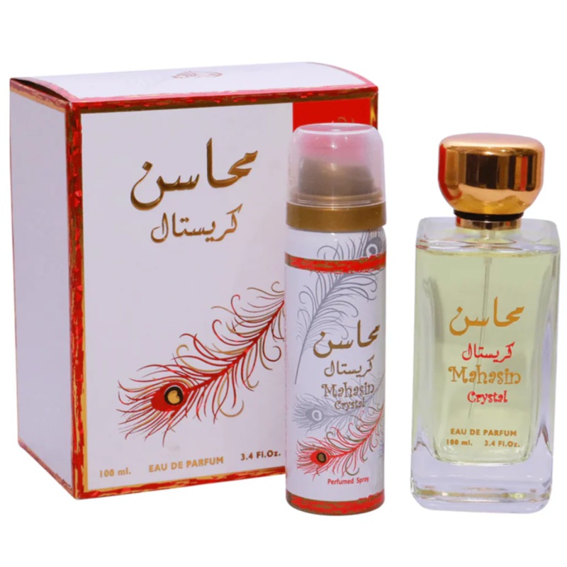 Lattafa Mahasin Crystal 2PCS Gift Set – 100ML EDP Spray + 50ML Perfumed Spray (Women)