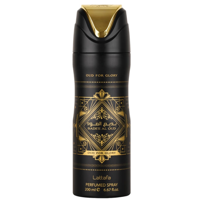 Lattafa Perfumes Oud For Glory Bade'e Al Oud Perfumed Spray 200ml(Unisex)This Perfumed Deodorant is part of the Bade'e Al Oud Collection by Lattafa.Top notes areBergamot, Pink Peppercorn, Blackcurrant.Heart notes arePeony, Caramel, Oud Wood.Base notes incl