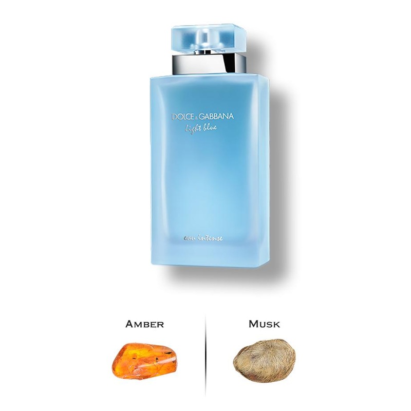 Designer Dolce & GabbanaDescription Light Blue Eau Intense is Light Blue's 2017 flanker introducing a more floral scent by reducing the intensity of the citruses and enhancing the intensity of the floral heart. The scent is less piercing but has the same c