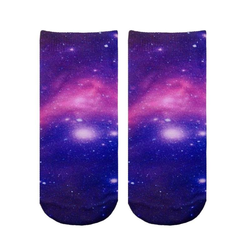 Launch into outer space with these Galaxy socks. Ribbed stretch band at top, seamed toe.UNISEX100% POLYESTERMADE IN THE USAONE SIZE FITS MOST7.5" L X 3" WPRINTED ON ONE SIDE ONLY*Details provided by Living Royal