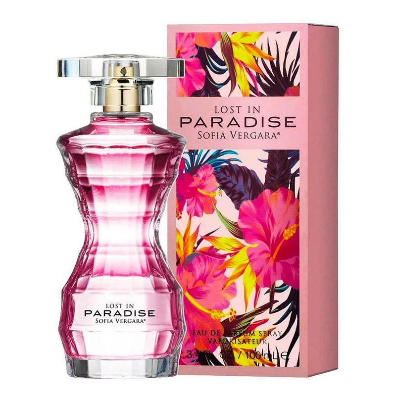 Lost In Paradise Launched by the design house Sofia Vergara. This floral fruity fragrance has a blend of crema de guanabana, crisp red apple, nashi pear, gardenia, orange flower, muguet, vanilla, patchouli and musk notes.