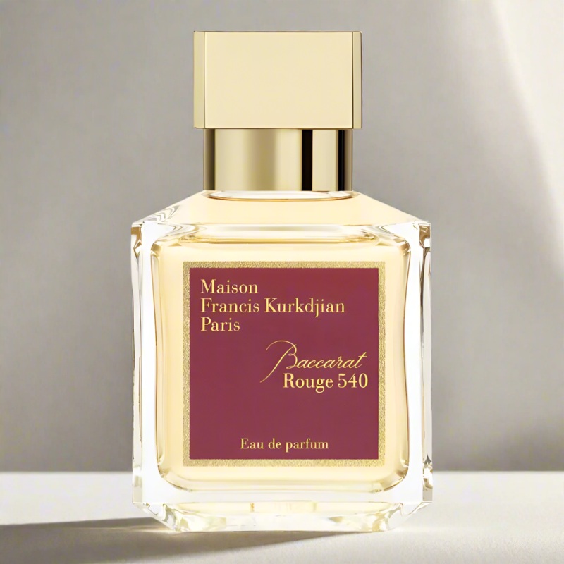 The fragrance opens with radiant saffron and breezy jasmine, representing the airy aura of the composition. At its heart, warm amberwood, ambergris, and hedione provide a mineral elegance, while the base introduces fir resin, cedar, sugar, ambroxan, and oakmoss, forming a sensual and long-lasting trail. Luminous and refined, Baccarat Rouge 540 caresses the skin with its iconic and addictive signature.