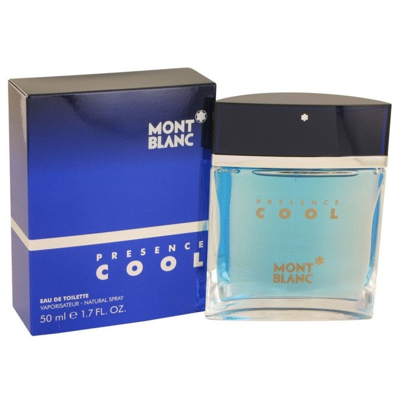 MontblancPresence Cool 50ml EDT (M) SPPresence Cool, launched in 2002, opens with clean and fresh notes of bergamot, Granny Smith apple and watery accords of bamboo. In the heart there are oxygen accord, geranium and jasmine, while the rich blend of sandal