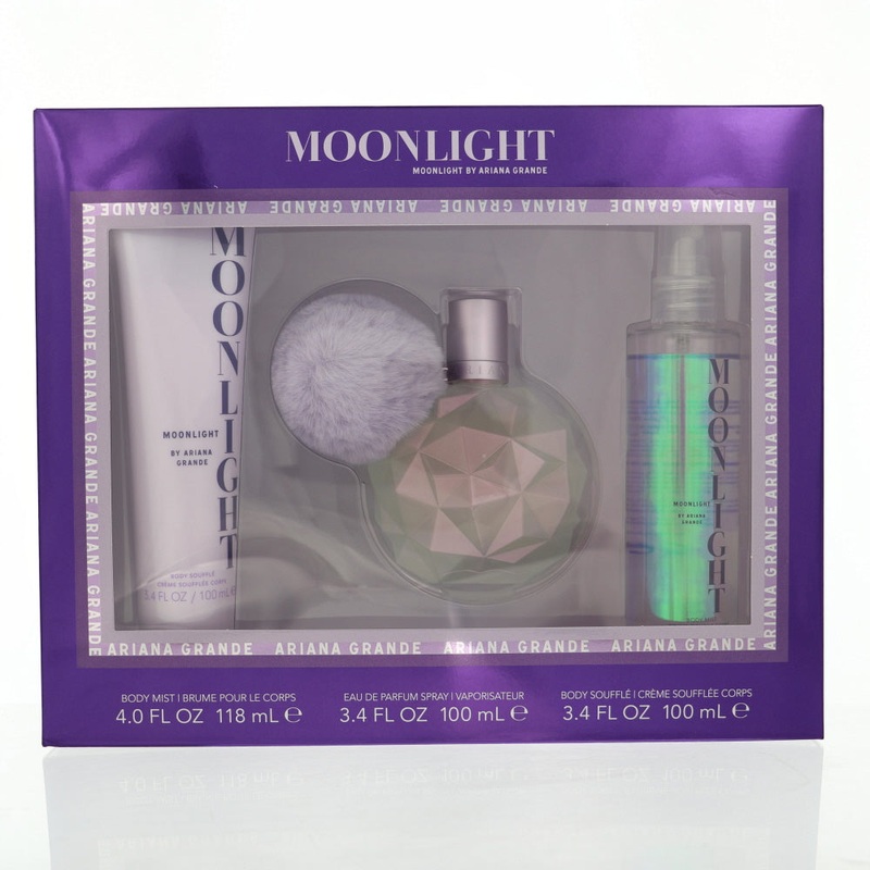 Moon Light By Ariana Grande Perfume 3 Piece Gift Set – 3.4 Oz Eau De Parfum Spray, 4.0 Oz Body Mist, 3.4 Oz Body Souffle For Women – Gift Set