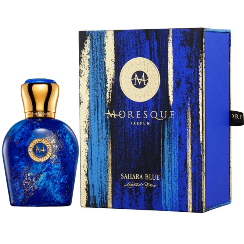 Moresque Sahara Blue Eau de parfum A Journey to the Heart of the Desert OasisIntroducing Moresque Sahara Blue Eau de parfuma fragrance inspired by the endless beauty of the desert, where the sun kisses the sand and the breeze whispers through the palms. Ex