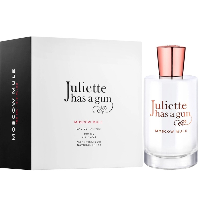 Introducing Juliette Has A Gun Moscow Mule, an earthy and woody Eau de Parfum that combines the delicate aroma of ginger, lime and jasmine for a sophisticated, luxurious scent. In a classic white and metallic bottle, the elegance of copper mugs is celebrat