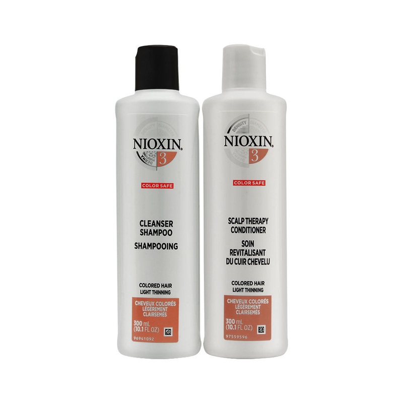Cleanser Shampoo:Nioxin System 3 Cleanser, normal to thin looking, fine, chemically treated hair. A volumizing cleanser to help remove follicle-clogging sebum, fatty acids and environmental residues from the scalp and hair. Cleanses to provide thicker-look