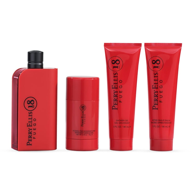 Perry 18 Fuego 4 Piece Gift Set 3.4 oz EDT+ 3.0 oz Shower Gel + 3.0 oz Balm + 0.25 oz Deo-stick