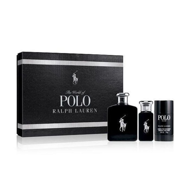 Set includes:- Polo Black 3 PCS SET EDT 4.2 oz, EDT 1.0 oz, EDT Deo Stick 2.5 oz. Manufacturer Ralph Lauren Gender Men Perfume Type Eau De Toilette Sizes Standard