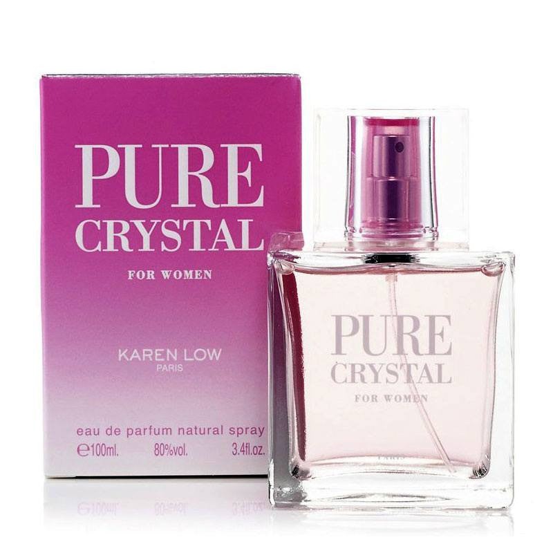 Pure Crystal by Karen Low is a Floral Woody Musk fragrance for women. Top notes are grenadine, apple and freesia; middle notes are lotus, peony and jasmine; base notes are sandalwood and ambergris.