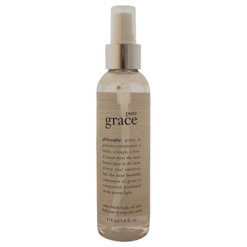 Slip into your best satin dress with Pure Grace Satin-Finish Body Oil Mist. The multi-purpose, fine mist is formulated with natural sunflower and olive oils, as well as vitamin B5, to help moisturize and condition skin for a luxuriously soft, satin finish. The lightweight, dry oil formula absorbs instantly and is infused with Philosophys soap and water clean fragrance for luxuriously soft, lightl