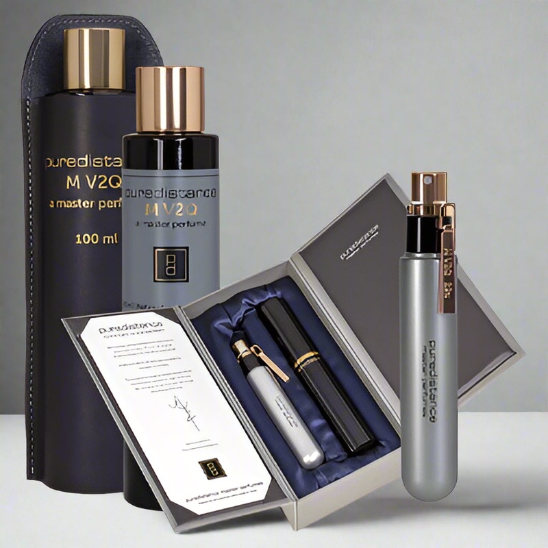 M V2Q is a masterfully composed extrait by Antoine Lie in Paris, featuring exclusive ingredients that bring out a distinctive and memorable character. With a refined blend of soft leather tones, this fragrance balances comfort and brightness with confident strength. Smooth and sophisticated, M V2Q is a testament to the exceptional quality of the Puredistance collection, offering outstanding projection and longevity.