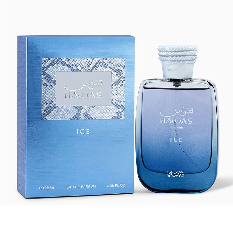 Rasasi Hawas Ice For Him 100ml EDP (M) SPTop notes are Apple, Italian Lemon, Sicilian Bergamot and Star Anise; middle notes are Plum, Orange Blossom and Cardamon; base notes are Musk, Amber, Moss and Driftwood.INGREDIENTS: ALCOHOL DENAT., AQUA/WATER/EAU, P