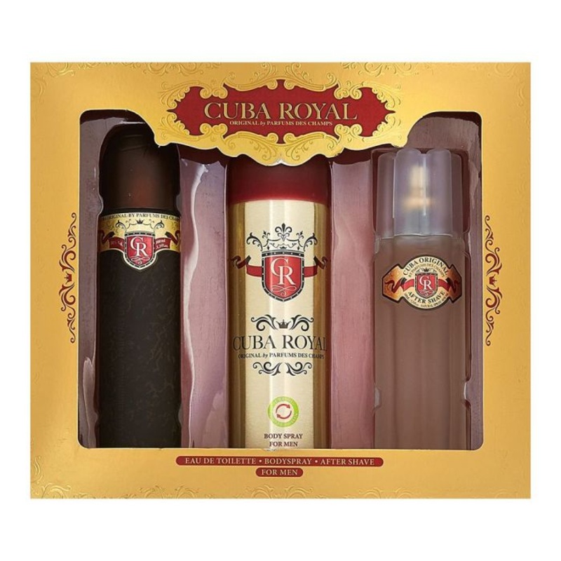 Set includes:- Eau De Toilette Spray 3.4 oz, Deodorant Spray 6.7 oz, After Shave 3.4 oz. Manufacturer Cuba Gender Men Perfume Type Eau De Toilette Sizes Standard