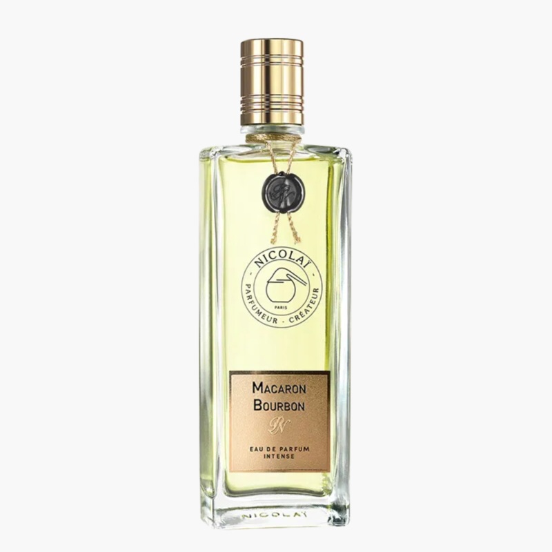 Parfums De Nicolai Macaron Bourbon Intense EDP is a rich gourmand fragrance blending bitter almond, caramel, and sweet rum with spicy clove and cinnamon. Anchored by patchouli, vanilla, and tonka bean, it wraps the skin in velvety warmth with a refined touch of rose.