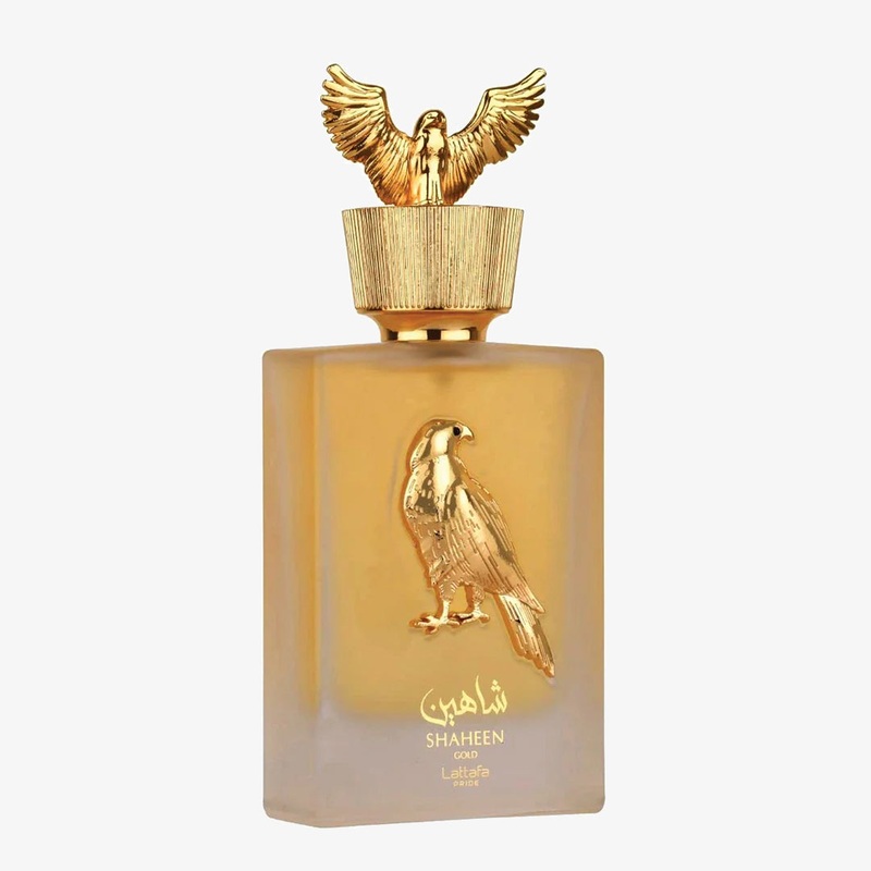 According toLattafa Shaheen’s gold review about its packaging. Its sleek and antique bottle design balances traditional and modern influences. The gold touch with the eagle makes the presentation eye-catching.