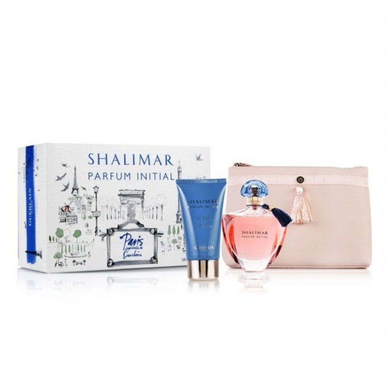 Shalimar Initial Gift Set by Guerlain 3 Piece Gift Set: 2.0 Oz Eau De Parfum Spray + 2.5 Oz Delicate Body Lotion + Clutch. For Women