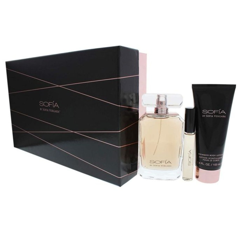 Set includes:- Eau De Parfum Spray 3.4 oz, Shimmer Body Lotion 3.4 oz, Eau De Parfum Rollerball Mini .33 oz. Manufacturer Sofia Vergara Gender Women Perfume Type Eau De Parfum Sizes Standard