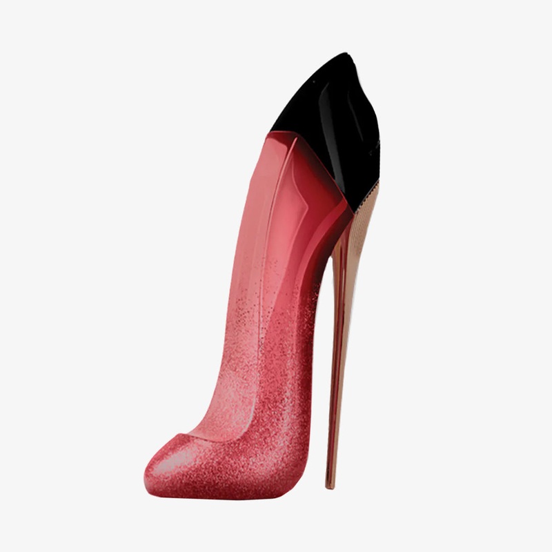 The Very Good Girl Glam Eau de Parfum bottle is a visual representation of the fragrances bold and glamorous character. Inspired by the iconic Very Good Girl stiletto-shaped bottle, the Glam version features a sleek, metallic red heel with a touch of sparkle. The design shows sophistication and luxury, making the fragrance not just a scent, but a statement piece on your vanity.