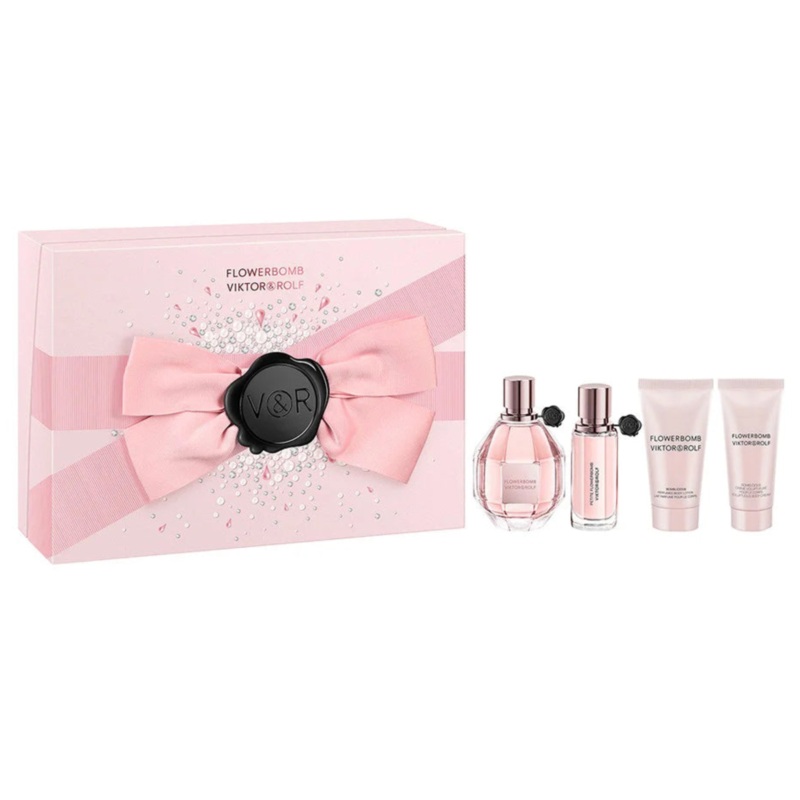 Viktor & Rolf Flowerbomb 4PCS Gift Set – 100ML EDP Spray + 20ML EDP Spray + 50ML Perfumed Body Lotion + 40ML Body Cream (Women)
