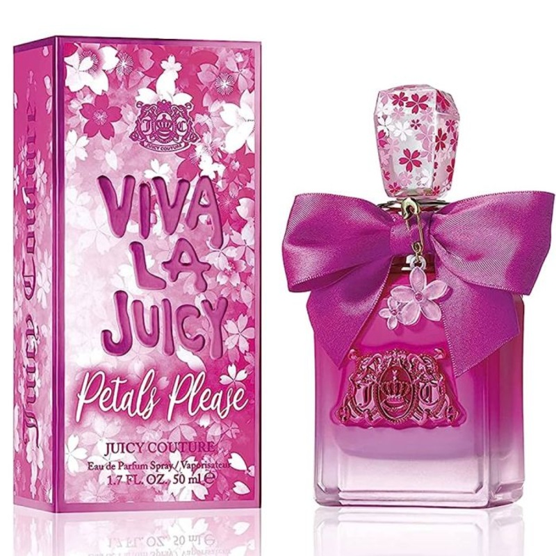 Viva La Juicy Petals Please by Juicy Couture is a Floral Fruity Gourmand fragrance for women. This is a new fragrance. Viva La Juicy Petals Please was launched in 2022. Top notes are Cloudberry, Water Lily and Magnolia; middle notes are Rose Water, Pink Freesia, Gardenia and Egyptian Jasmine; base notes are Caramel, Madagascar Vanilla, Amber, Woodsy Notes and Salt.