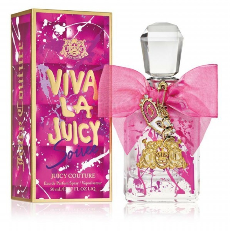 Designer Juicy CoutureDescriptionViva La Juicy Soiree is a cheeky and charming floral woody fragrance that offers a fantastical escape from reality. This wild fun-filled scent introduces an interesting fusion of kiwi and white florals to the world of Juicy