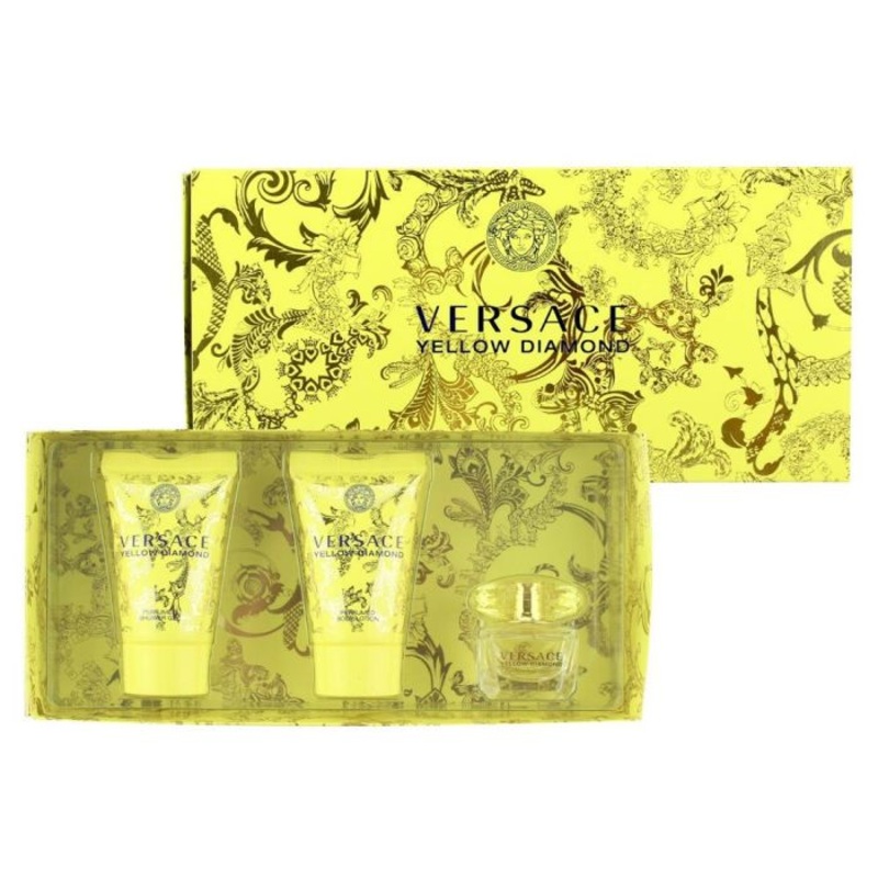 A luminous summertime fragrance, Versace Yellow Diamond Perfume is an airy and ethereal scent that blends elements of radiant citrus, aqueous florals, and powdery wood. Part of a line inspired by the vibrancy of crystals, this fragrance is light enough to wear during the day, though you can also certainly save it for special occasions. The aromas opening notes are a sweet and uplifting effusion of Amalfi lemon, bergamot, and cooling pear sorbet, softened by citrusy neroli. Heart notes shimmer and sparkle with lush and light floral accords, a romantic garden of African orange flower, freesia, and waterlily mingled with hazy-sweet mimosa. Amber, velvety guaiac wood, and soft musk in the base notes leave an elegant, enticing trail. Yellow Diamond Perfume by Versace is purely feminine, captivating the glamorous charm of women everywhere. Its the perfect gift for yourself or for a special woman in your life. If youre thinking about purchasing a gift for someone, one of our Versace Yellow Diamond Perfume gift sets would make a beautiful present for any holiday, birthday, or anniversary. One gift set features a mini eau de parfum bottle, a mini body lotion bottle, and a mini shower gel bottle so that you can smell like luxury at all times.