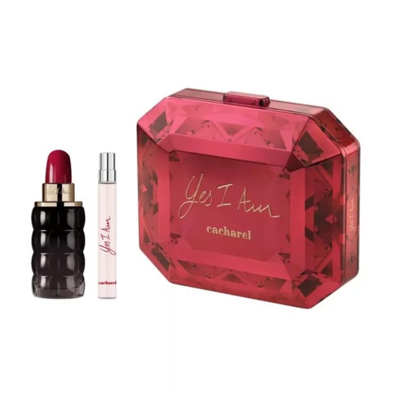 Yes I Am Eau De Parfum, the new and innovative fragrance by Cacharel. With its lipstick-inspired bottle design, Yes I Am is the new signature fragrance for the bold, independent woman. This spicy cremoso fragrance is an explosion of femininity with its notes of sparkling raspberry, addictive amber and white flower bouquet. Powerful, smart and sexy, Yes I Am embodies the modern woman. Set includes:- 1.7 oz Eau De Parfum, 0.34 oz Eau De Parfum Spray
